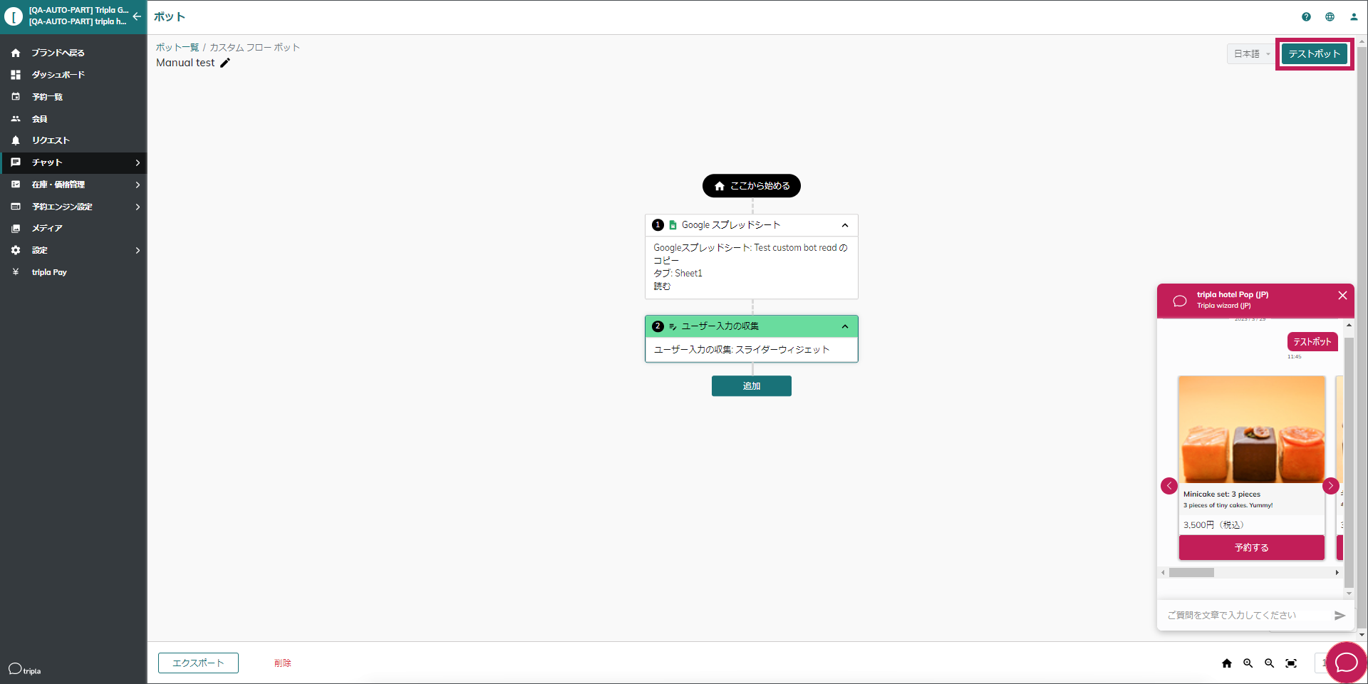 tripla Bookのオプションをチャットボットで販売することが可能です。