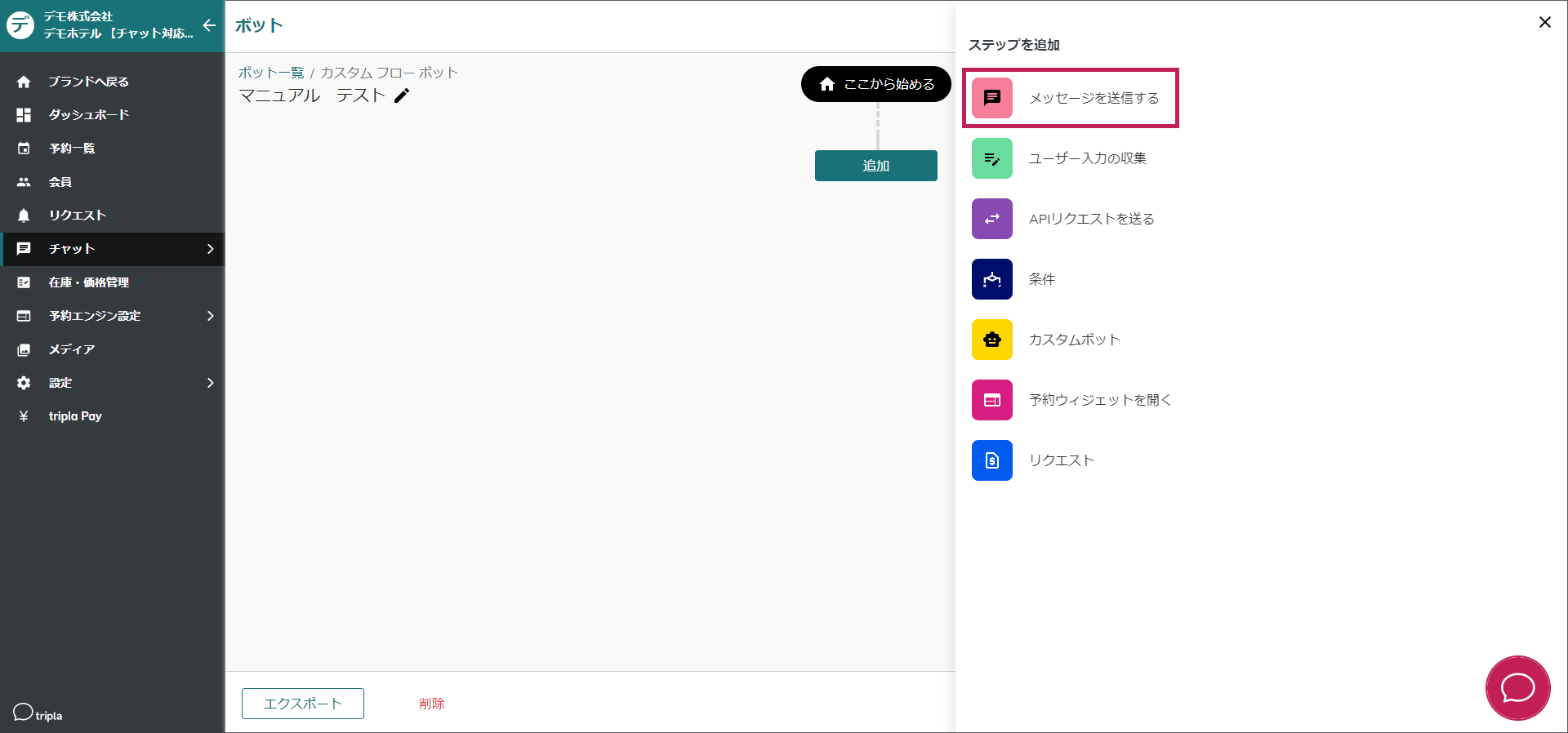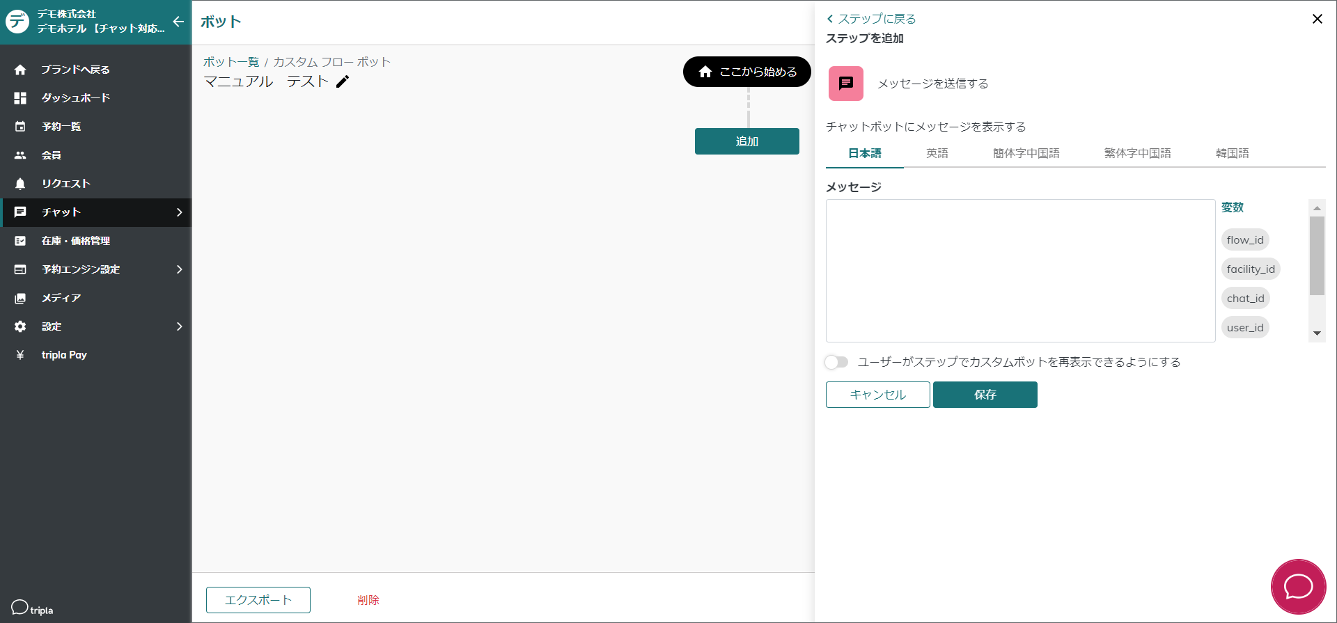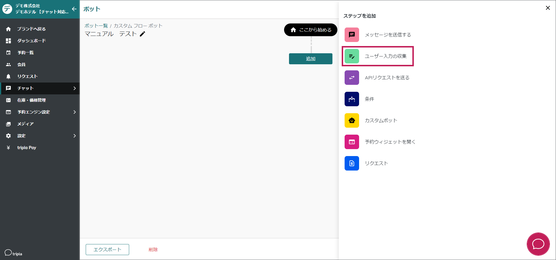 [chatbot-menu-setting](https://docs.tripla.jp/chatbot/chatbot-menu-setting)