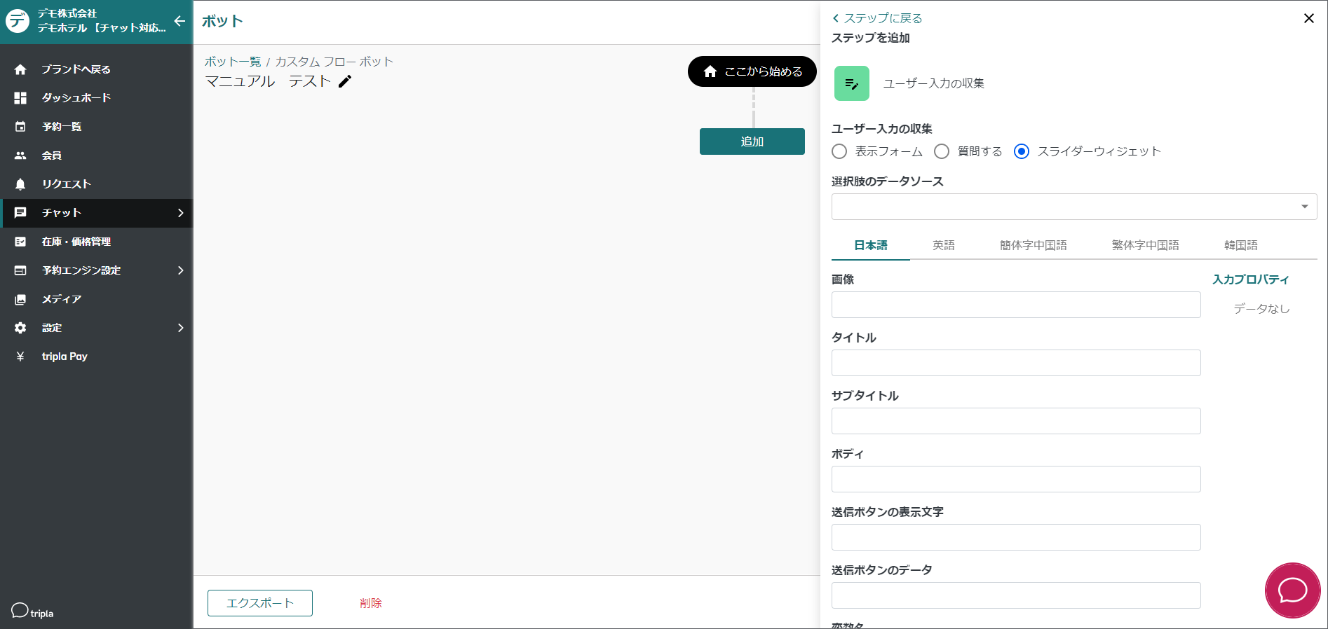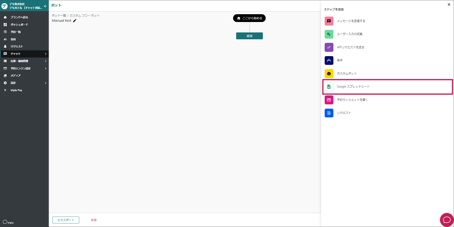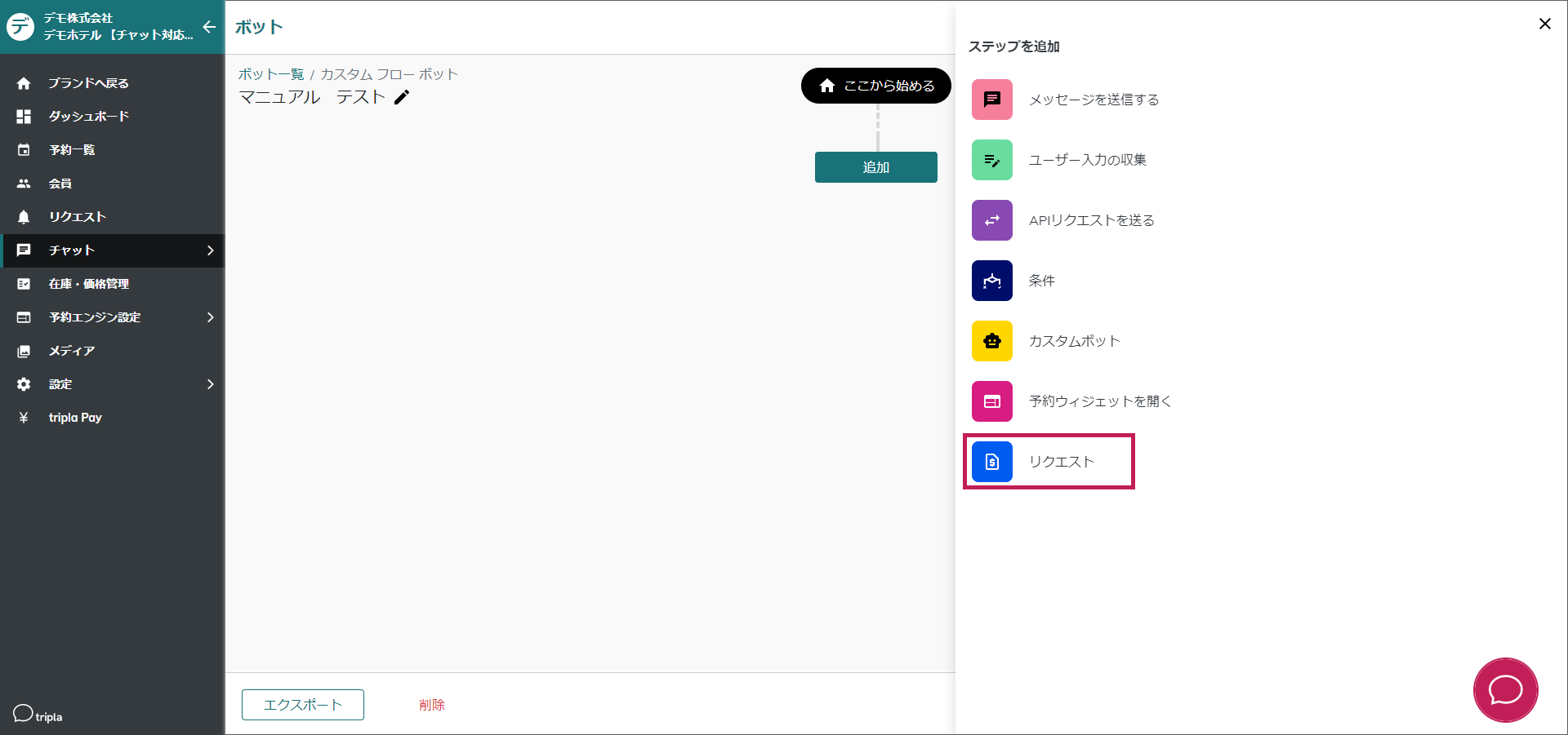 [chatbot-menu-setting](https://docs.tripla.jp/chatbot/chatbot-menu-setting)