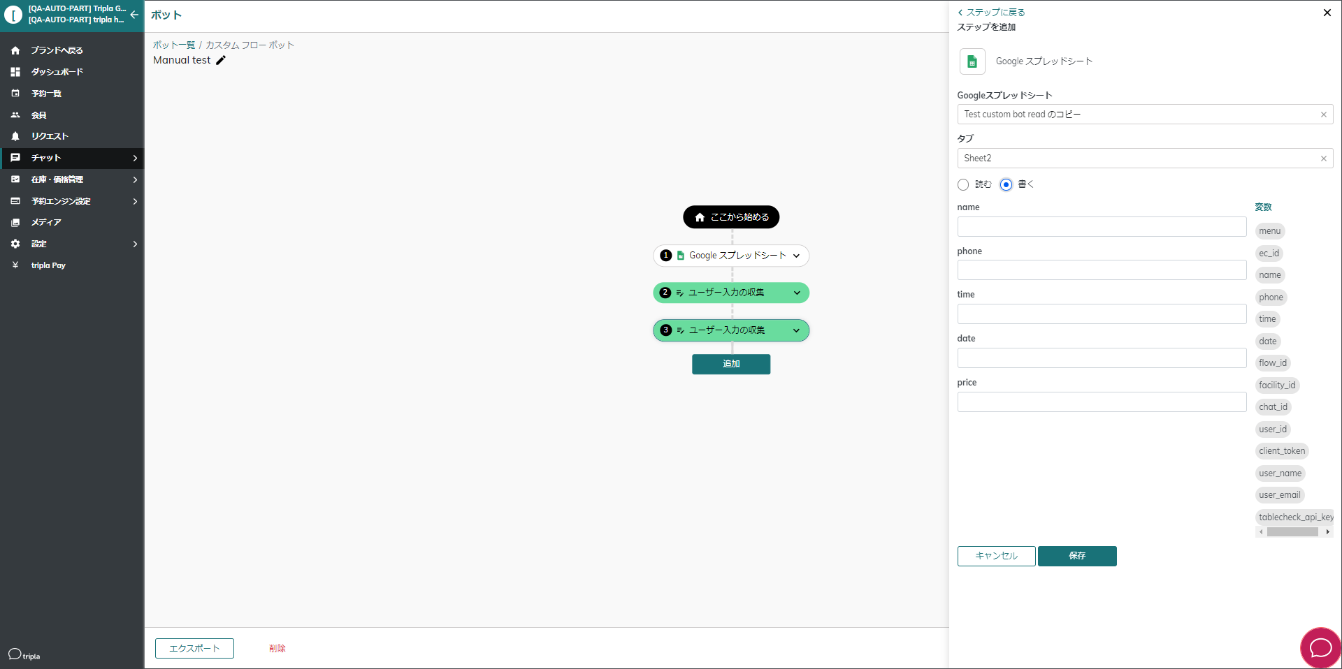 予約の取得などを行った場合、Googleスプレッドシートへの書き込みを行う事が可能です。