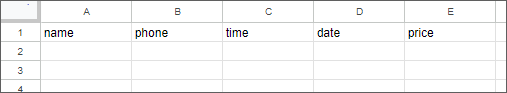 空のスプレッドシートに入力したい情報の記入を行います。