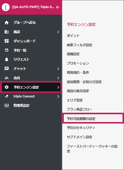 \[予約エンジン設定]→\[予約可能期間の設定]を選択します。