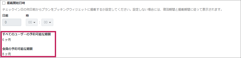 プラン作成・変更画面では\[掲載開始日]に予約可能な期間として表示されます。
